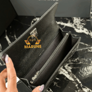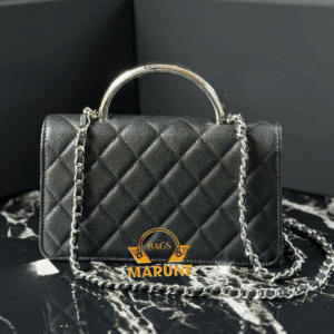 Hãy là người đầu tiên nhận xét “Túi Xách Nữ Hàng Hiệu cao cấp 1:1 Nel Flap Bag With Silver-Tone Handle Size 11cm Da Caviar Màu Đen.”