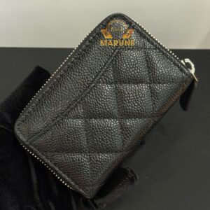 Ví Đựng Thẻ Nữ C*anel Kéo Màu Đen Da Caviar.